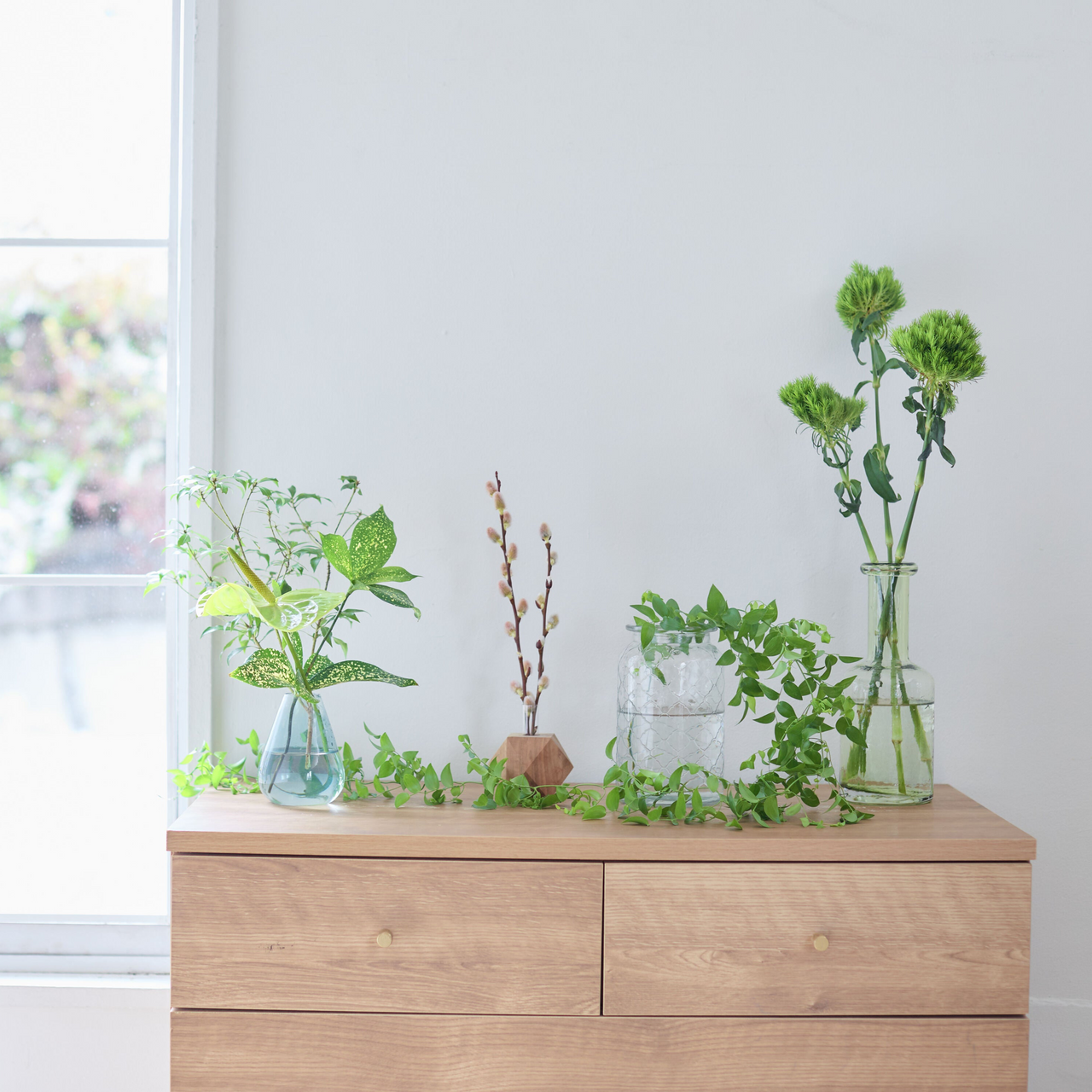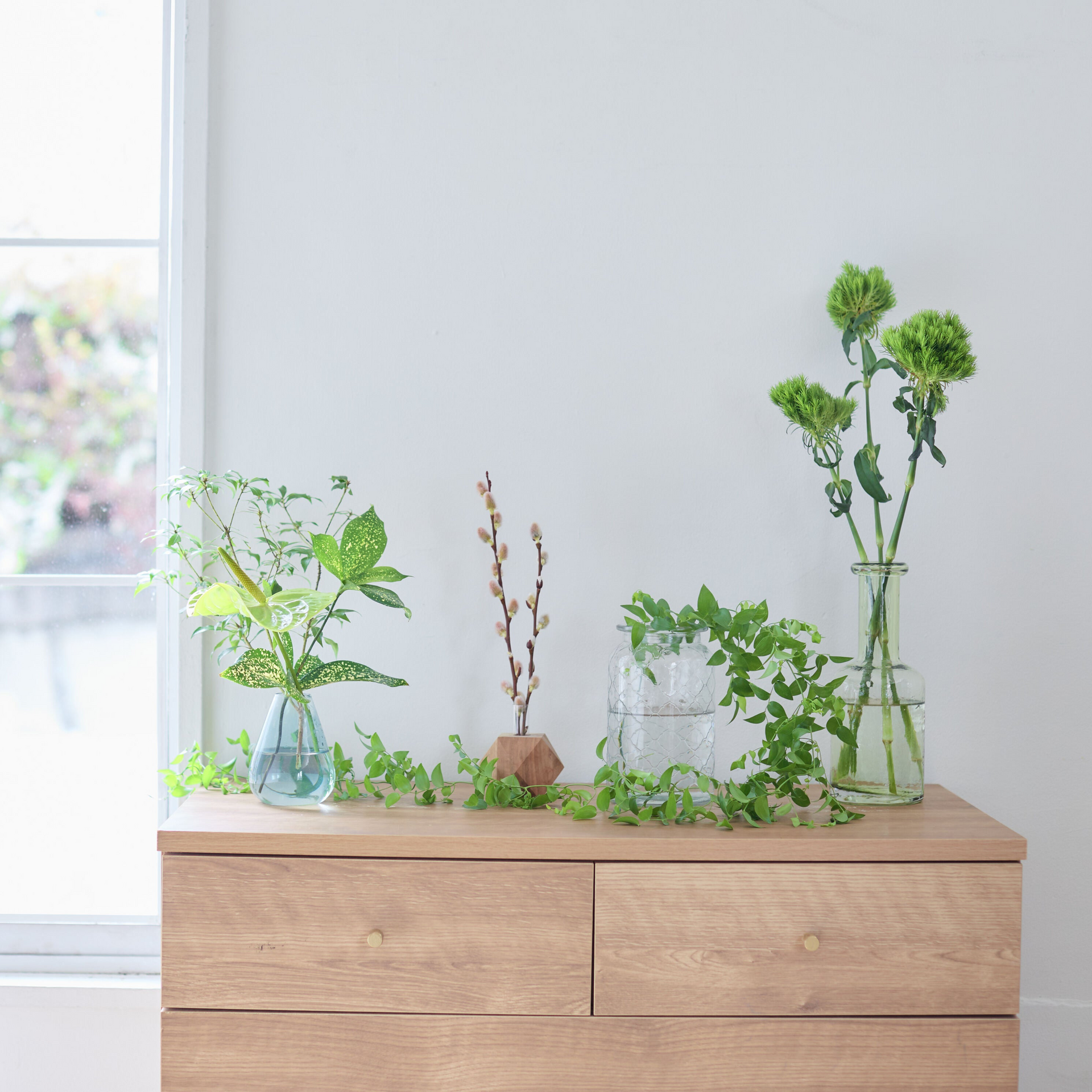 大きな花瓶にまとめて生けても、小分けにしてお部屋の至る所に飾るのもおすすめです。